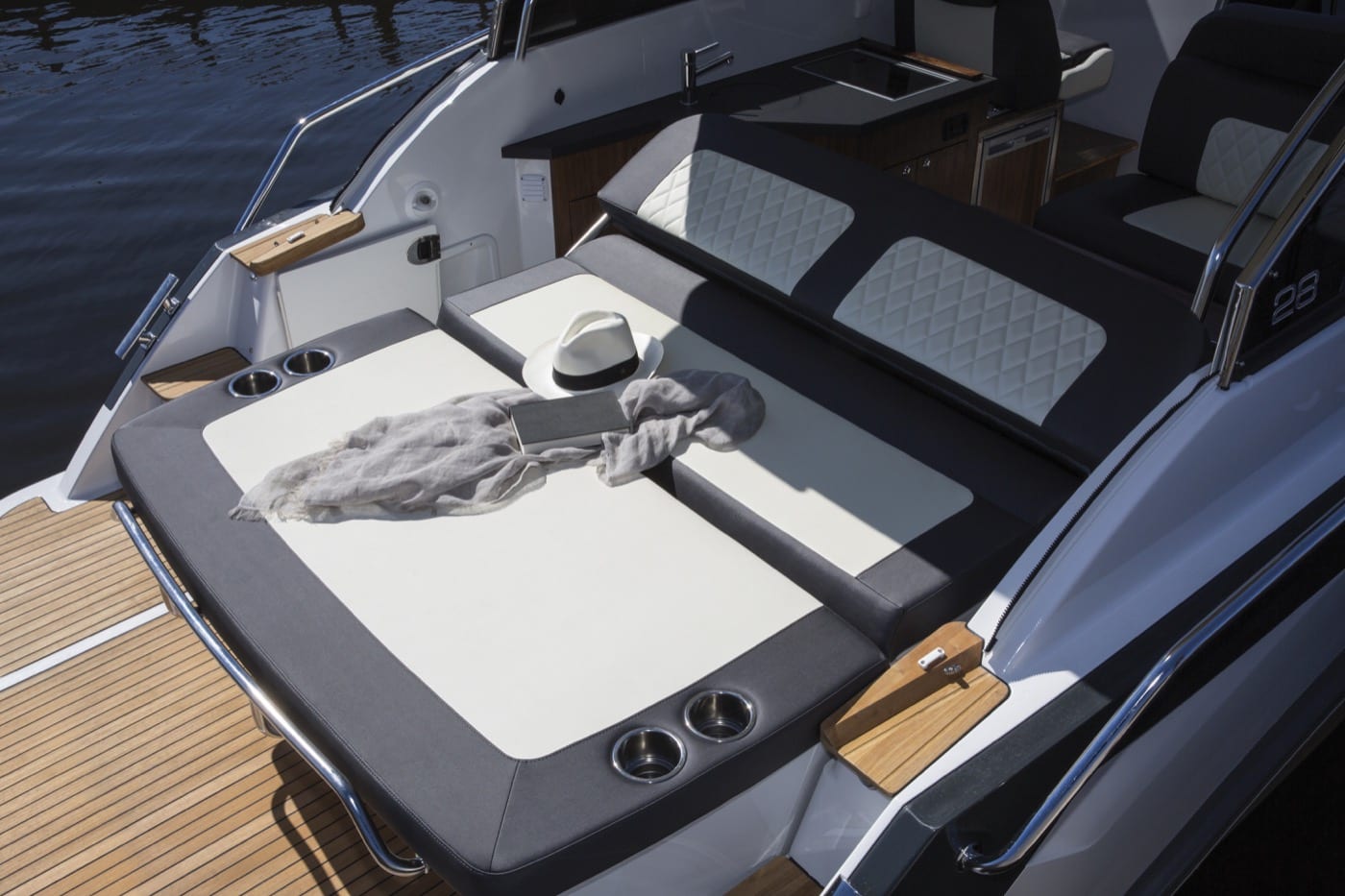 The Grandezza 28 OC is the perfect choice for easy living on the waters. Spacious and refined cockpit with generous open space for entertaining. The inviting and comfortable cabin makes overnight staying easy.